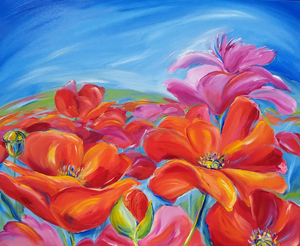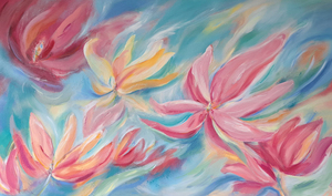 In mijn abstracte bloemenschilderijen geef ik bloemen en bloemvormen een levendige en uitbundige expressie. Mijn inspiratie komt uit mijn rozentuin en (veld)bloemen, en ik wil graag de vreugde en verwondering die ik ervaar overbrengen.
